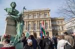 A székháznál Kamarás Katalin (fizikus, akadémikus, a Wigner Fizikai Kutatóintézet közalkalmazotti tanácsának tagja), illetve Bicskei Éva (művészettörténész, az Akadémia Művészeti Gyűjteményének vezetője, az MTA BTK MI tudományos főmunkatársa) mondtak beszédet az akkor még csak 7-800 résztvevőnek.